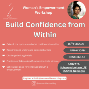 Vanaf 16 februari 2026 zal Sameera Patel maandelijks terugkerende Woman’s Empowerment Workshops geven. De voertaal zal engels zijn. Meer informatie: Kijk op de website van Sameera Lifecoaching of stuur een mail naar: hello@sameeralifecoaching.com